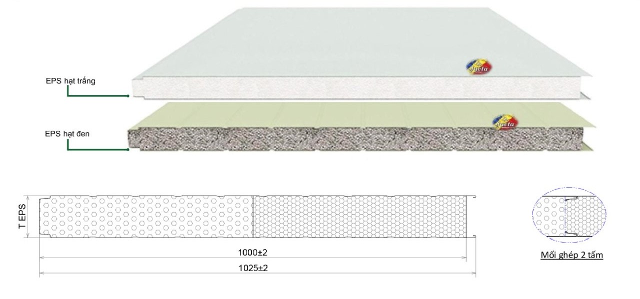 Lớp xốp Eps có độ kín khít cao, mật độ ô khí kín, không tạo các khoảng trống khe hở giúp ích nhiều trong việc chống ồn hiệu quả, cách nhiệt cũng như ngăn cản nhiệt độ đi qua, loại bỏ sự xâm nhập của vi khuẩn, nấm mốc gây hư hỏng tấm Panel từ bên trong.